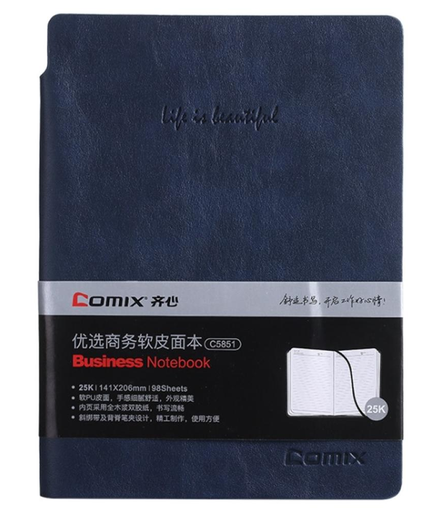 كومكس - دفتر اعمال 98ورقة ورق اصفر مسطر مقاس A5 - لون ازرق غامق