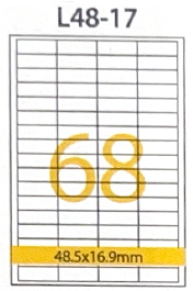 RIKLABEL - ملصقات متعددة الأغراض 68 قطعة لون أبيض - 48.5*16.9ملم - علبة عبوة 100 ورقة - مقاس A4