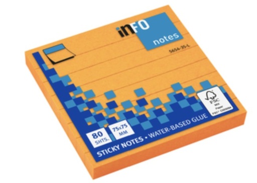 انفو نوت - ورق ملاحظات لاصق مسطر - 75*75ملم 80ورقة - لون برتقالي