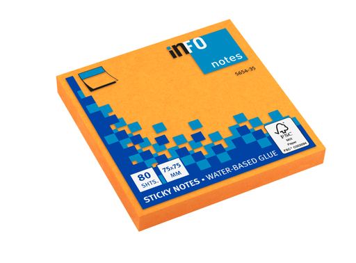 انفو نوت - ورق ملاحظات لاصق - 75*75ملم 80ورقة - لون برتقالي
