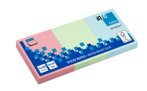 انفو نوت - ورق ملاحظات لاصق - ملون باستيل - 3 قطع 40 * 50ملم 100 ورقة