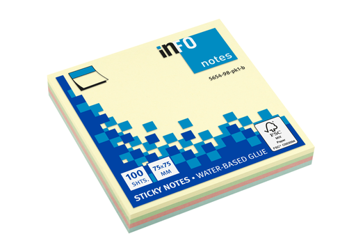 انفو نوت - ورق ملاحظات لاصق - ملون باستيل - 75*75ملم 100 ورقة