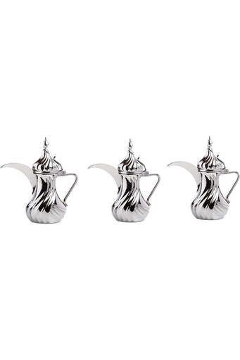 3 طقم دلال من السيف بتصميم تقليدي أنيق، مثالية لتحضير وتقديم القهوة العربية اللون فضي