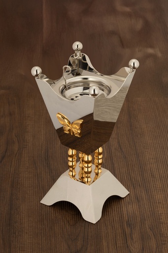 مبخرة نقشة فراشة من السيف بلون نيكل ذهبي / تصميم أنيق يجمع بين الفخامة والعصرية / مثالية لنشر الروائح العطرية في المجالس والمناسبات / تضيف لمسة راقية لأجواء الضيافة والمنزل