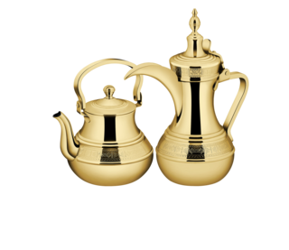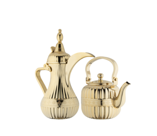 2 طقم دلة و إبريق من السيف دلة لتحضير وتقديم القهوة العربية، وإبريق عملي لتسخين الشاي، بتصميم متين ومريح يناسب الاستخدام اليومي والضيافة اللون ذهبي