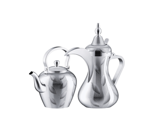 2 طقم دلة و إبريق من السيف دلة لتحضير وتقديم القهوة العربية، وإبريق عملي لتسخين الشاي، بتصميم متين ومريح يناسب الاستخدام اليومي والضيافة اللون كروم