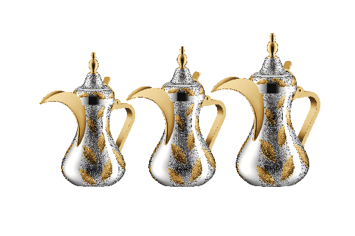 طقم دلال من السيف مقاس 26/32/48 اونص بتصميم تقليدي أنيق، مثالية لتحضير وتقديم القهوة العربية اللون ذهبي/فضي
