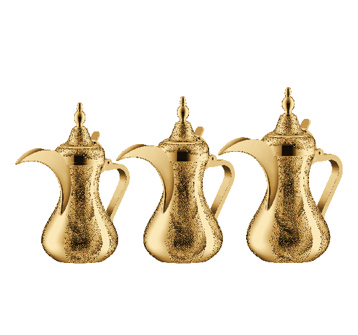 طقم دلال من السيف مقاس 26/32/48 اونص بتصميم تقليدي أنيق، مثالية لتحضير وتقديم القهوة العربية اللون ذهبي