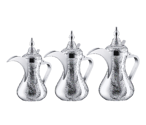 طقم دلال من السيف مقاس 26/32/48 اونص بتصميم تقليدي أنيق، مثالية لتحضير وتقديم القهوة العربية اللون كروم