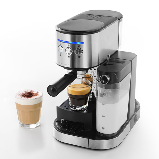 صانعة قهوة إسبريسو من السيف / إسبريسو، كابتشينو، لاتيه مع الحليب، آلة كبسولات قهوة مع وظيفة رغوة الحليب / سعة 1.2 لتر، قوة 1470 واط / اللون: أسود