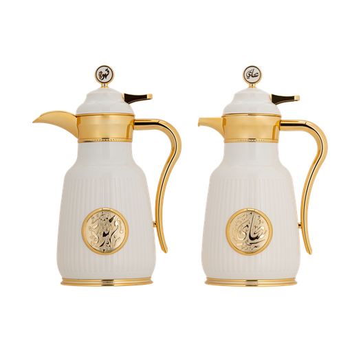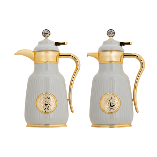 طقم اصال للقهوة وشاي قطعتين من السيف / تصميم أنيق يناسب جميع الأذواق / مصنوع للحفاظ على حرارة المشروبات لساعات طويلة / مثالي للاستخدام اليومي في المنزل أو المكتب / متعدد الالوان - عاجي/ذهبي