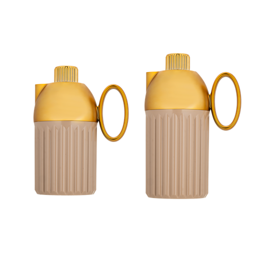 طقم اصال للقهوة وشاي قطعتين من السيف / تصميم أنيق يناسب جميع الأذواق / مصنوع للحفاظ على حرارة المشروبات لساعات طويلة / مثالي للاستخدام اليومي في المنزل أو المكتب / متعدد الالوان - بني/ذهبي