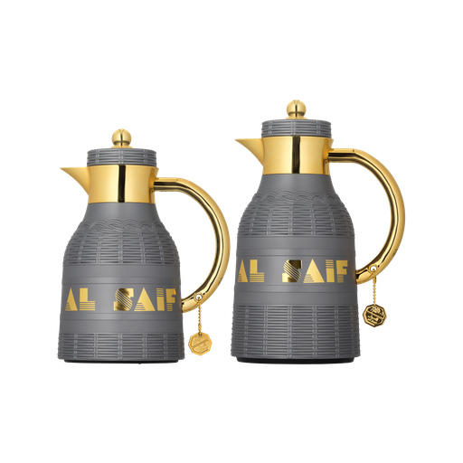 طقم طلة للقهوة وشاي قطعتين من السيف / تصميم أنيق يناسب جميع الأذواق / مصنوع للحفاظ على حرارة المشروبات لساعات طويلة / مثالي للاستخدام اليومي في المنزل أو المكتب / متعدد الالوان - رمادي/ذهبي