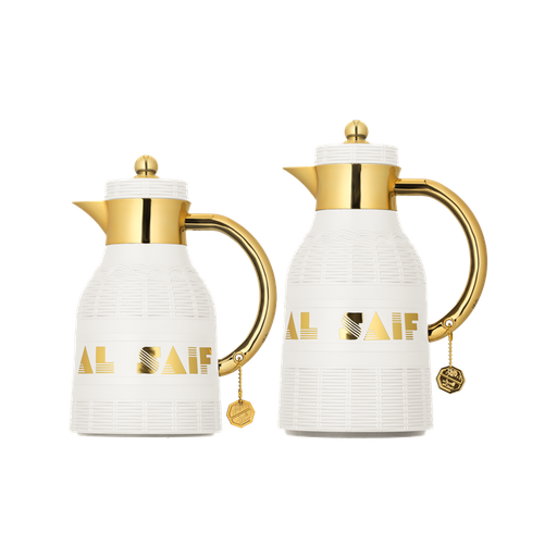 طقم طلة للقهوة وشاي قطعتين من السيف / تصميم أنيق يناسب جميع الأذواق / مصنوع للحفاظ على حرارة المشروبات لساعات طويلة / مثالي للاستخدام اليومي في المنزل أو المكتب / متعدد الالوان - عاجي/ذهبي