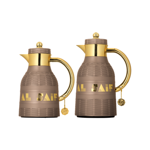 طقم طلة للقهوة وشاي قطعتين من السيف / تصميم أنيق يناسب جميع الأذواق / مصنوع للحفاظ على حرارة المشروبات لساعات طويلة / مثالي للاستخدام اليومي في المنزل أو المكتب / متعدد الالوان - بني/ذهبي