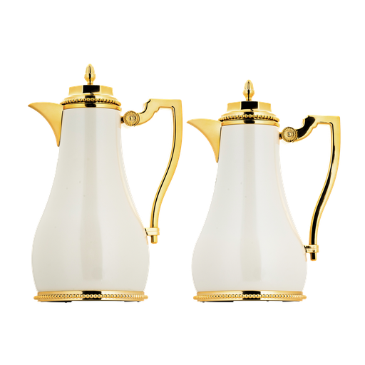 طقم ترمس شدن للقهوة وشاي قطعتين من السيف سعة 1.0/0.7 لتر / تصميم أنيق يناسب جميع الأذواق / مصنوع للحفاظ على حرارة المشروبات لساعات طويلة - 1.0/0.75 لتر - عاجي / ذهبي