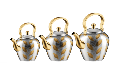 أبريق تيماء من السيف متين وأنيق، مثالي لتقديم الشاي وانواعه متعددة المقاسات والالوان - ذهبي - طقم 3 قطع