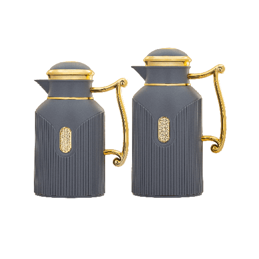 طقم ترمس قهوة وشاي من قطعتين من ديفا / تصميم أنيق يناسب جميع الأذواق سعه 0.7/1.0 لتر - رمادي غامق/ ذهبي