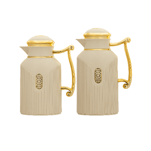 طقم ترمس قهوة وشاي من قطعتين من ديفا / تصميم أنيق يناسب جميع الأذواق سعه 0.7/1.0 لتر - عاجي/ذهبي