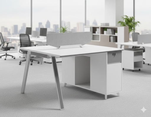 طاولة اجتماع باللون الابيض و الرمادي مع ارجل معدنية