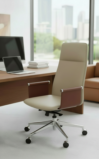 كرسي جلد فاخر لون بيج